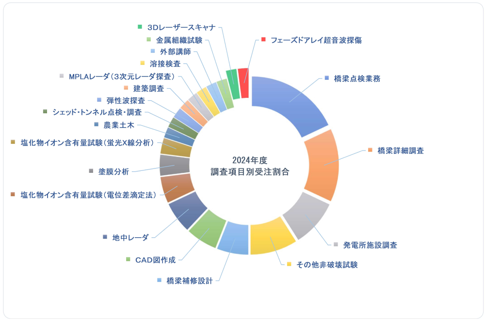 New Post 2025年11月4日 NEW! ちょっとブレイクタイム 🍵 2025年10月28日 企業概要 2025年9月18日 思い出の縁起だるまをリフォーム 最近のシンダンギジュツ カメぞうの甲羅干し お腹空いた 体重測定392.3g ∑q|゚Д゚|pワオォ 空腹「川魚達」!! ミナミヌマエビ ”ふきのとう”を植えたら 何か生まれた タナゴの稚魚??? インフラ老朽化に正面から挑む 技術の目を絶えず養い、社会の安全・安心を確保するために全力を尽くします。 現場主義 構造物調査・診断の基本は現場を直接観察すること。当社は現場を大切にします。 新技術の開発 根気強さ、粘り強さを持って、新しい技術へのキャッチアップを追求します。 診断技術株式会社はコンクリートから金属まで構造物全般の調査会社です 私たちは社会資本の安全性向上へ積極的に取り組み、あらゆる可能性を考察します。構造物に関する基本的な知識はもちろん、最新の測定機器と経験豊富な技術者が弊社の強みです。 非破壊検査をはじめ、金属、コンクリート、地中など、あらゆるジャンルの調査に対応いたします。 各種構造物の調査・診断 コンクリート橋梁の調査・診断 金属の調査・分析 電磁波レーダ探査 非破壊試験(コンクリート) 非破壊試験(金属)