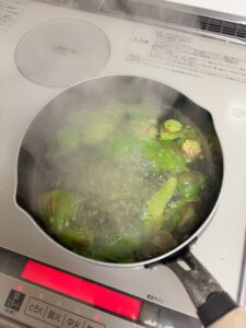 熱湯で30秒茹でて水にさらし、水気をきる。